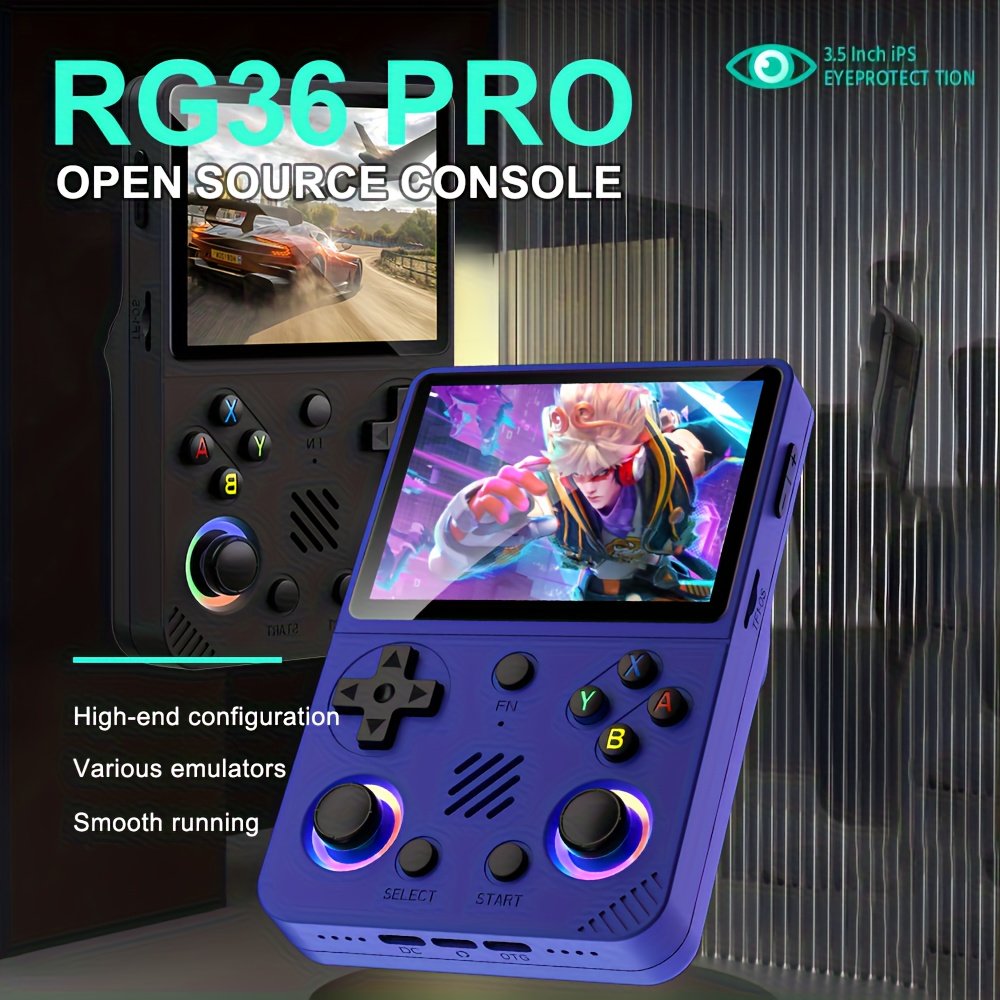 RG36 PRO Portable Game Console – Portable Pocket Arcade, 64GB TF Card, 3D Dual Joysticks, RGB Lighting Effects, 3000mAh Rechargeable Battery, 3.5-inch IPS High-definition Screen, Ultra Long Battery Life, Nostalgic Design, Birthday/Festival Gift